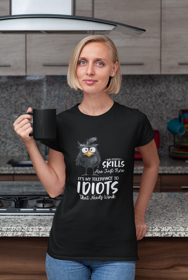 Introducing the “My People Skills Are Just Fine; It’s My Tolerance to Idiots That Needs Work” Tee—because let’s face it, you’re not antisocial, you’re just selectively social. This tee is for the queens of quiet judgment, the masters of the side-eye, and anyone who’s ever needed a shirt to say what their face already did.